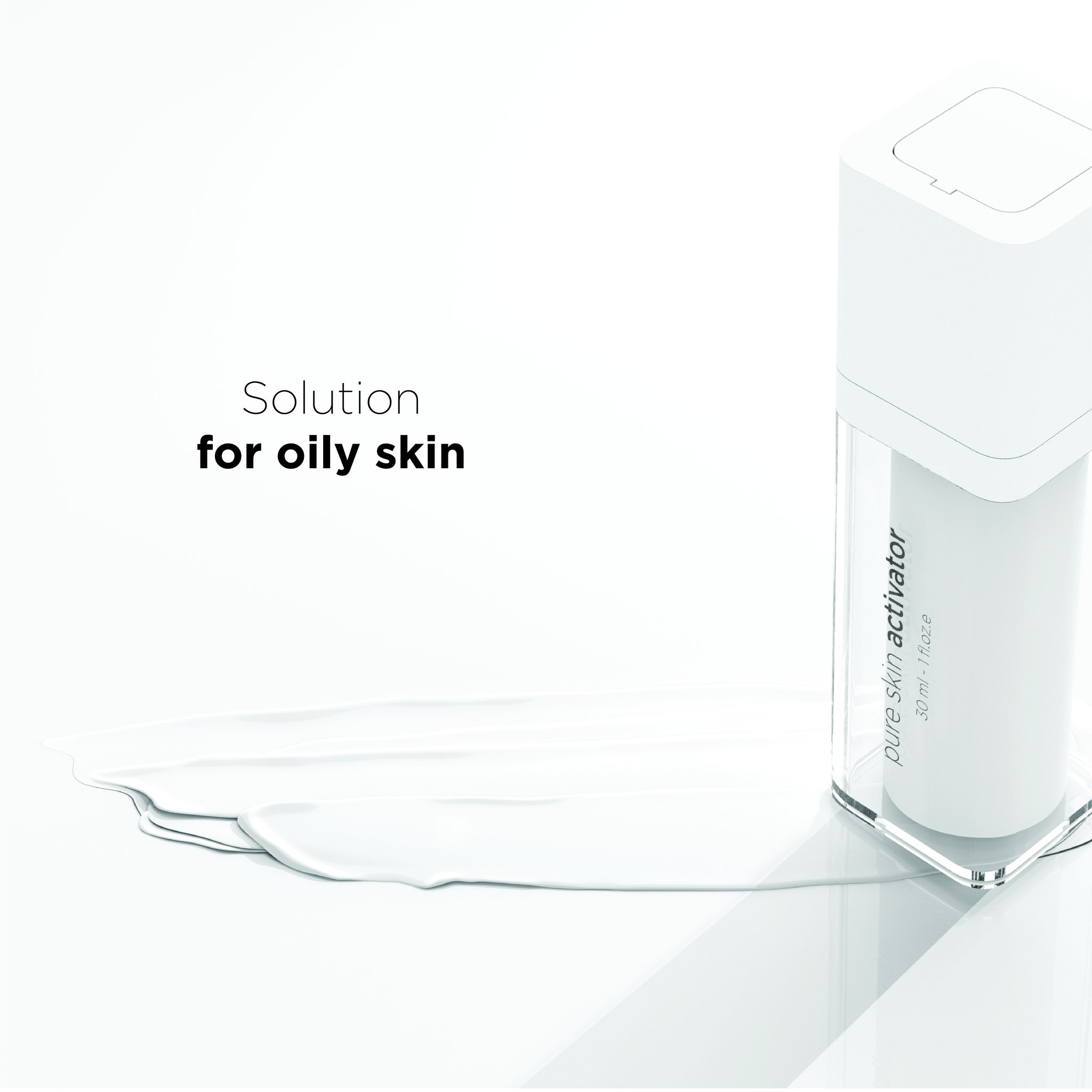 Deze nachtactivator is geformuleerd om de pH van de huid geleidelijk te verlagen, tegelijkertijd te exfoliëren, vocht aan te vullen en onvolkomenheden te verminderen voor een gladde, stralende teint. Het wordt gebruikt om de huid voor te bereiden op peelings. Pure skin activator is een zeer lichte en zijdezachte olie-in-water-emulsie voor de vette huidtypes. Het combineert 2 soorten zuren met natuurlijke actieve ingrediënten om onzuiverheden, acne en rosacea te zuiveren, te verminderen.